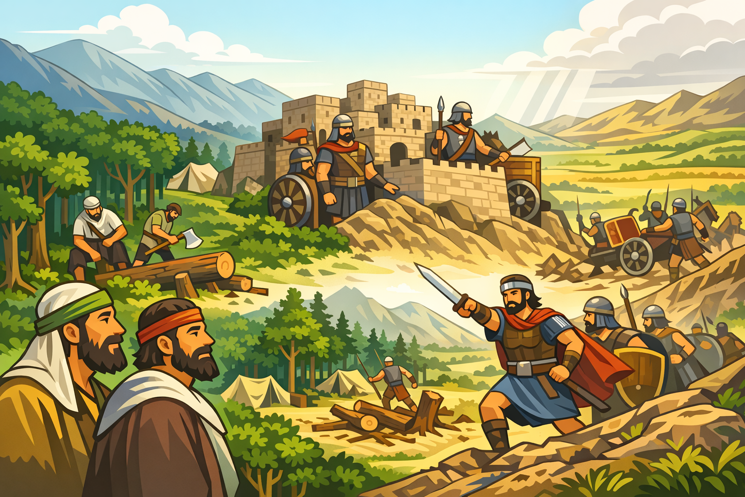 (숲을 개척하거나, 철전차를 가진 가나안사람과 전투하는 일 등)