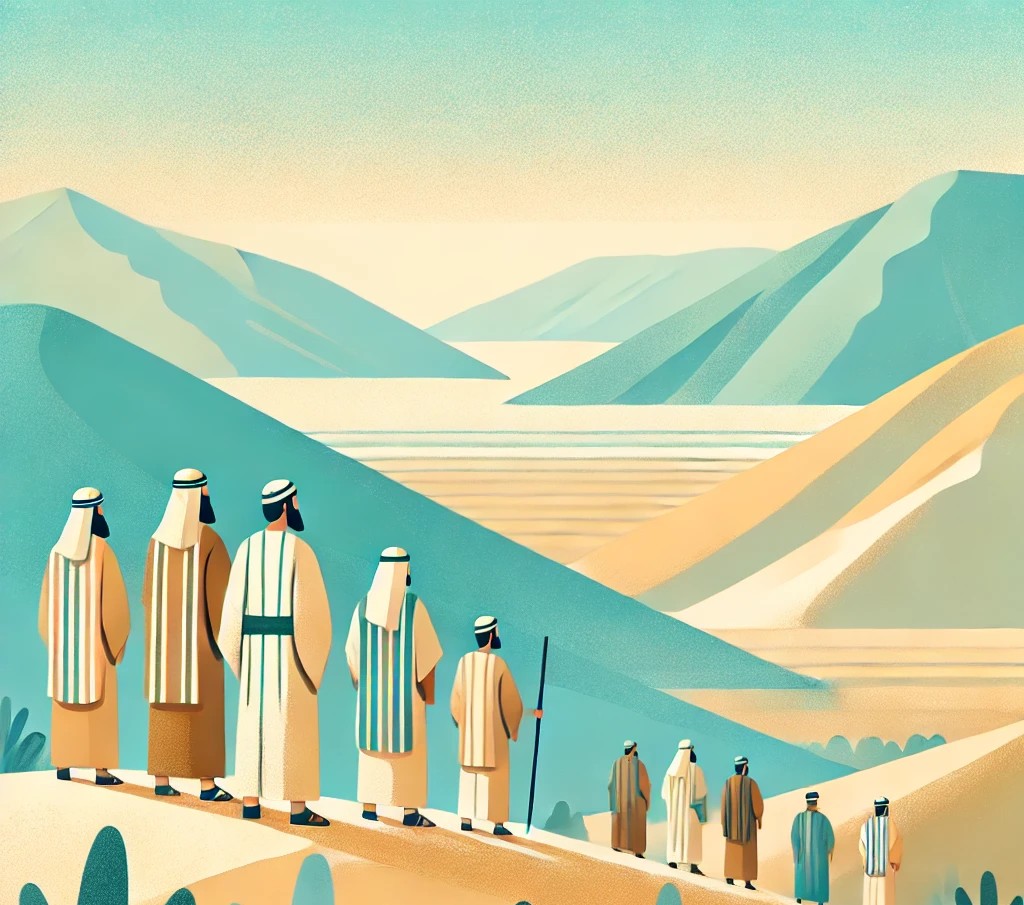 모세는 하나님의 명령에 따라 바란 광야에서 12명의 정탐꾼을 보냈습니다.